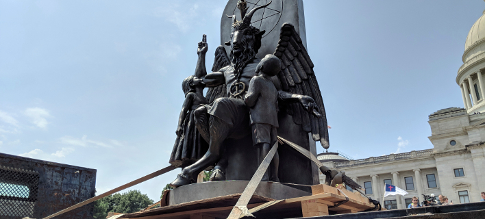Σε χειροκροτήματα και πανηγυρισμούς ξέσπασε ομάδα σατανιστών στα αποκαλυπτήρια του αγάλματος ενός φτερωτού, τραγόμορφου δαίμονα έξω από το Καπιτώλιο του Αρκάνσας στο Λίτλ Ροκ.